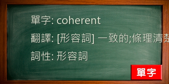 coherent [形容詞] 一致的;條理清楚的;連貫的