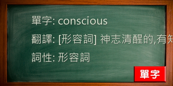 adj.神志清醒的, 意識到的, 自覺的, 有意的