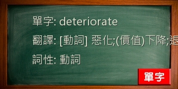 deteriorate學測完整大全,紀錄詳細方便閱讀deteriorate,你還在煩惱不知道怎麼讀deteriorate?在此教你記憶-deteriorate...