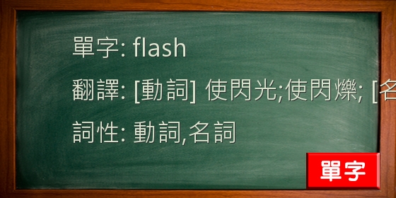 動詞過去式: flashed | 動詞過去分詞: flashed | 動詞現在分詞: flashing | 動詞第三人稱單數: flashes |