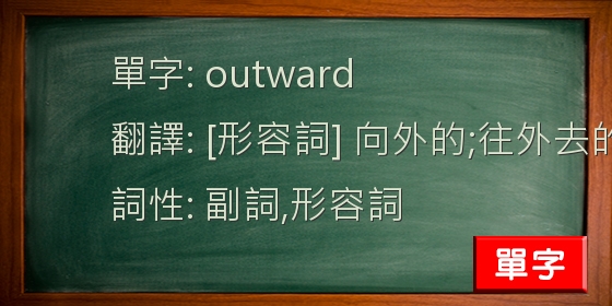 outward [形容詞] 向外的;往外去的; [副詞] 向外;出海,出港