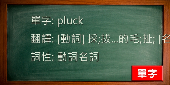 pluck [動詞] 採;拔...的毛;扯; [名詞] (一)拉;(一)扯