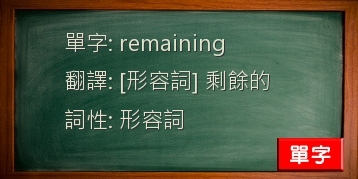 remaining學測完整大全,紀錄詳細方便閱讀remaining,你還在煩惱不知道怎麼讀remaining?在此教你記憶-remaining...