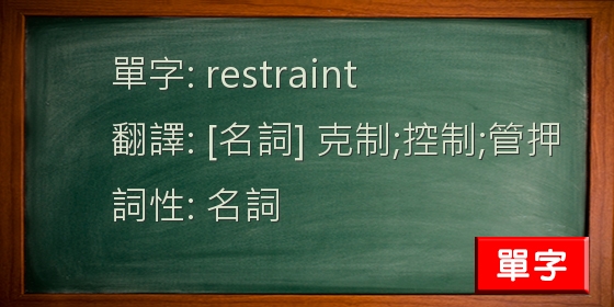 bond | control | constraint | self-control | command | self-possession | limit | limitation | curb | prevention | ceiling | continence | abstinence | check | bondage | prohibition | captivity | arrest | imprisonment | government | confinement | belt | chain | shackle | fetter | bit | simpleness | simplicity | chasteness |
