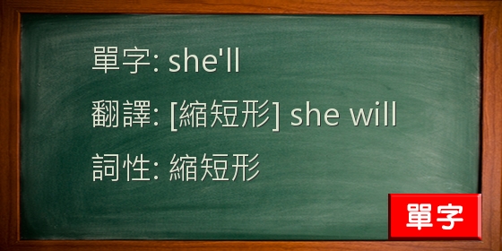 'll: 'll =will, shall (如 she'll, I'll 等)。