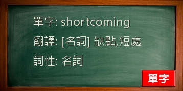 shortcoming學測完整大全,紀錄詳細方便閱讀shortcoming,你還在煩惱不知道怎麼讀shortcoming?在此教你記憶-shortcoming...