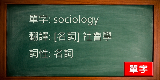 形容詞: sociologic | 副詞: sociologically | 名詞: sociologist |