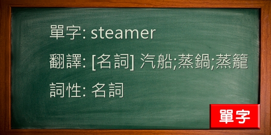 steamer [名詞] 汽船;蒸鍋;蒸籠