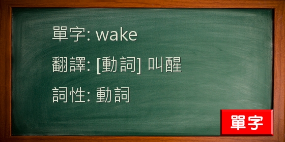 名詞: waker | 動詞過去式: woke/waked | 動詞過去分詞: waked/woken | 動詞現在分詞: waking | 動詞第三人稱單數: wakes |