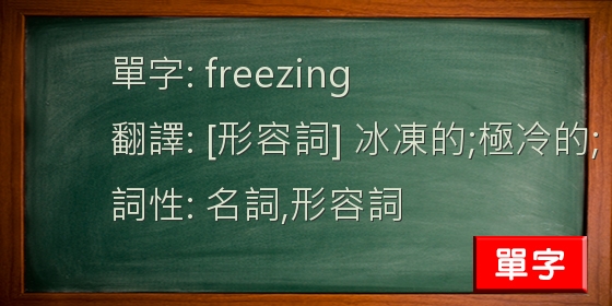 freezing [形容詞] 冰凍的;極冷的; [名詞] 凍結狀態